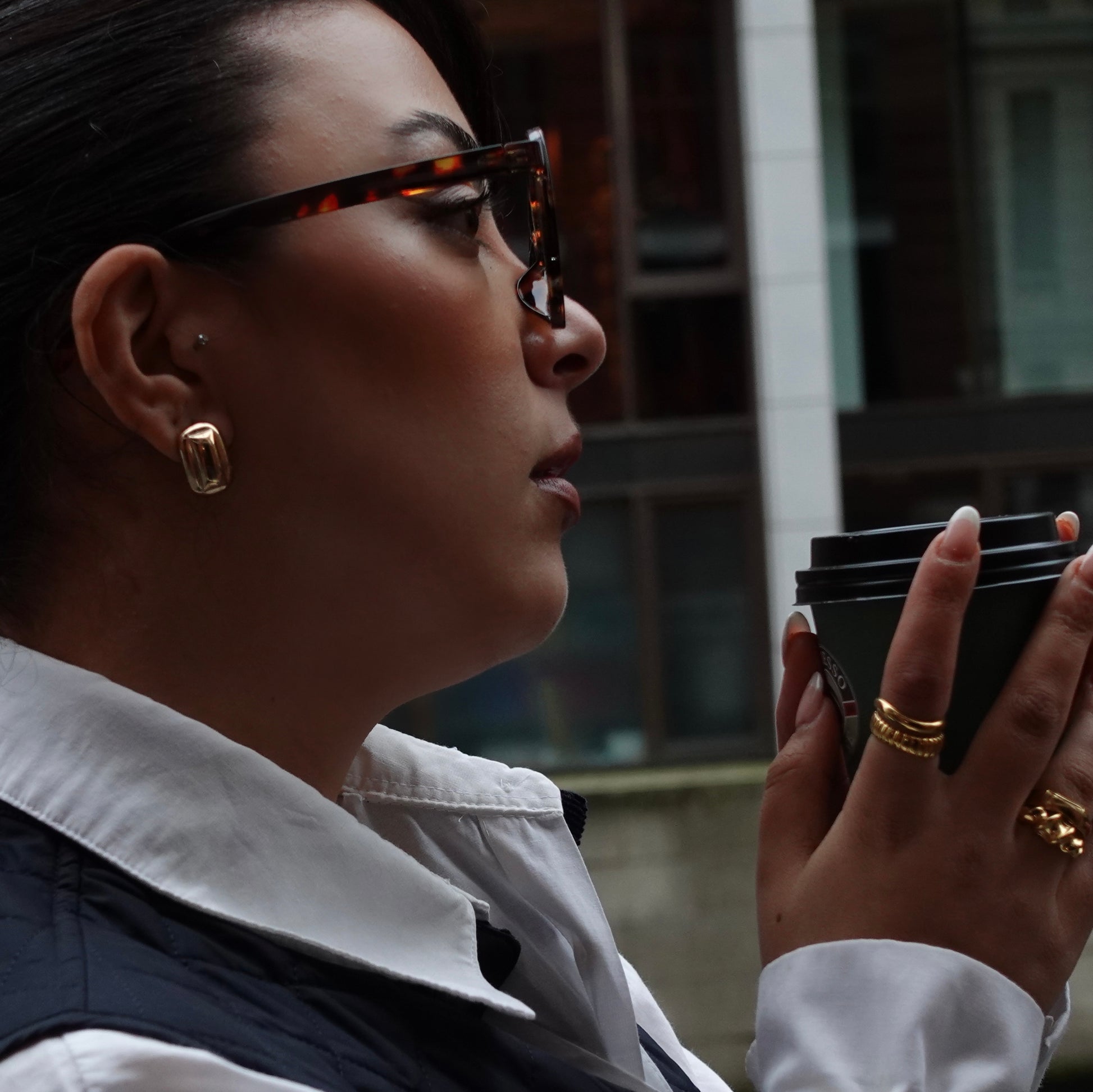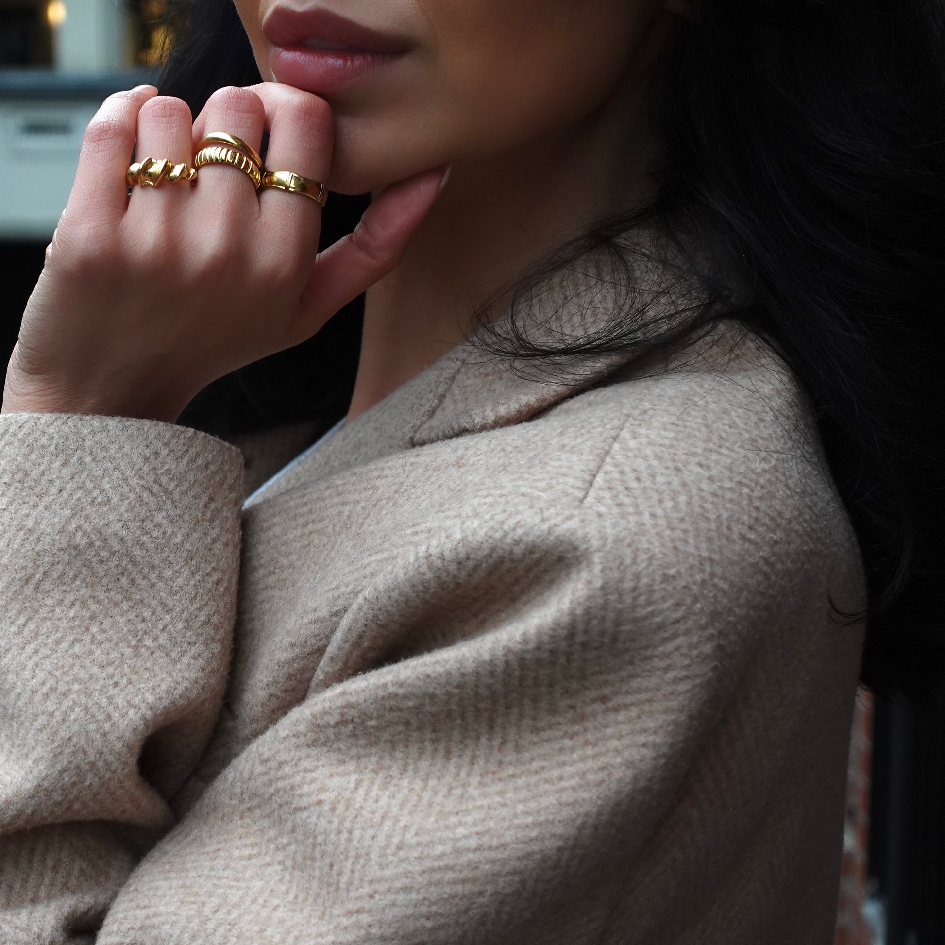 Der Elara Bold Ring vereint kraftvolle Eleganz mit kunstvoller Struktur. Sein markantes Design aus goldenen Ornamenten zieht sofort die Blicke auf sich und macht ihn zum idealen Statement-Piece. Ob einzeln getragen oder kombiniert mit filigranen Ringen, der Elara Bold Ring verleiht jedem Look eine luxuriöse und zugleich moderne Ausstrahlung.