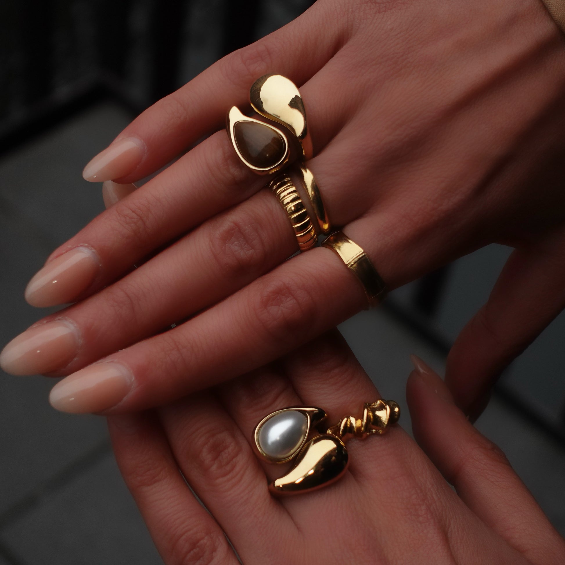 Unser stilvoller Oraya Tropfenring mit Tigerauge- Stein vereint zeitloses Design mit hochwertiger Verarbeitung. Gefertigt aus langlebigem Edelstahl 316, besticht er durch sein geometrisches Muster und seine offene Form, die bequem und vielseitig zu tragen ist. Das Einlegematerial aus Tigerauge- Stein verleiht jedem Ring einen besonderen Akzent und macht ihn zu einem echten Blickfang. Der Ring eignet sich perfekt für den Alltag, Festivals oder besondere Anlässe.